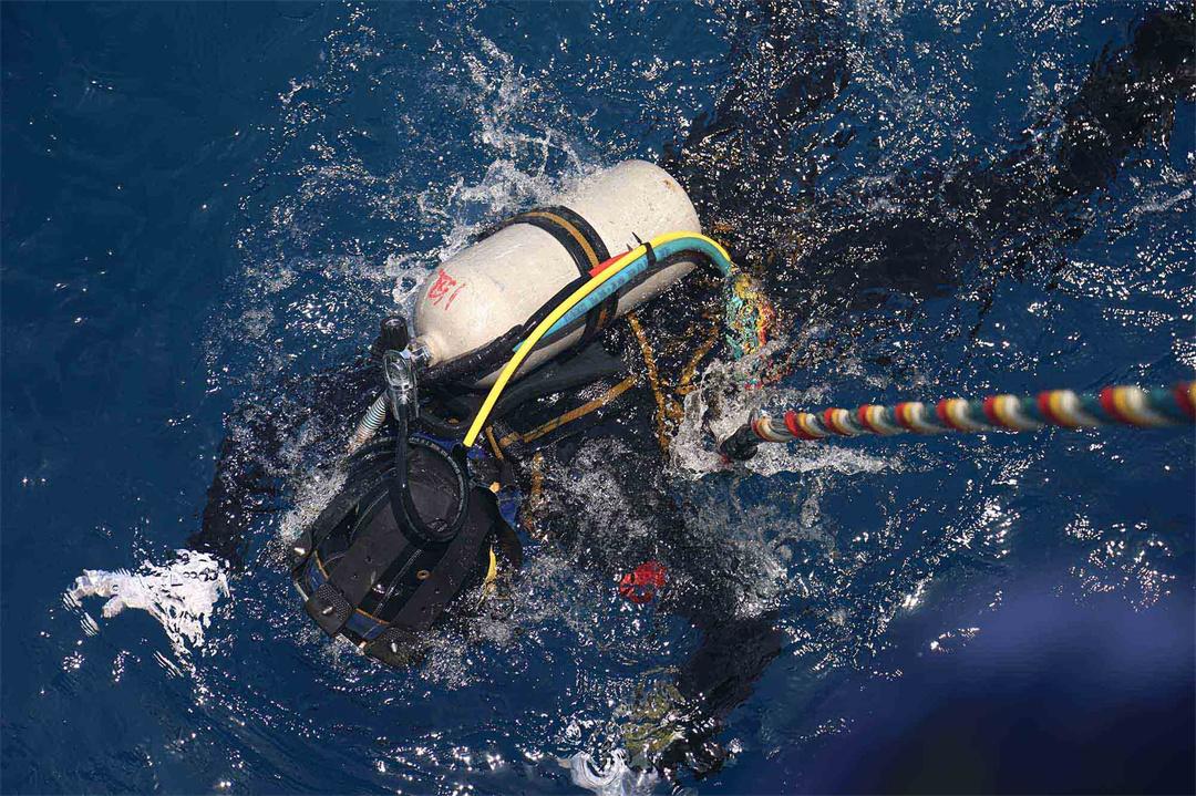 圖為潛水員下潛作業(yè)。