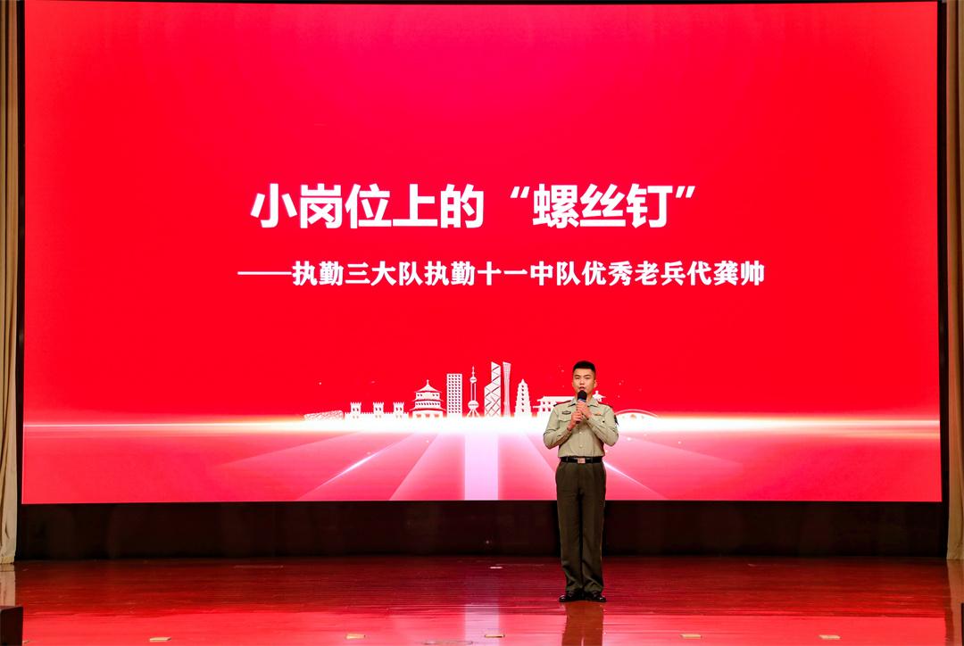 9月9日下午,武警北京總隊執(zhí)勤第六支隊舉辦“忠誠衛(wèi)士永向黨”感動軍營優(yōu)秀老兵頒獎典禮,通過事跡宣講與文藝匯演相結(jié)合的方式,深情講述優(yōu)秀退伍老兵不忘初心、砥礪奮進的感人事跡,傳承弘揚退伍老兵愛崗敬業(yè)、無私奉獻的精神財富,以高昂激越的主旋律引領(lǐng)全體官兵忠實履行使命、奮進強軍征程。