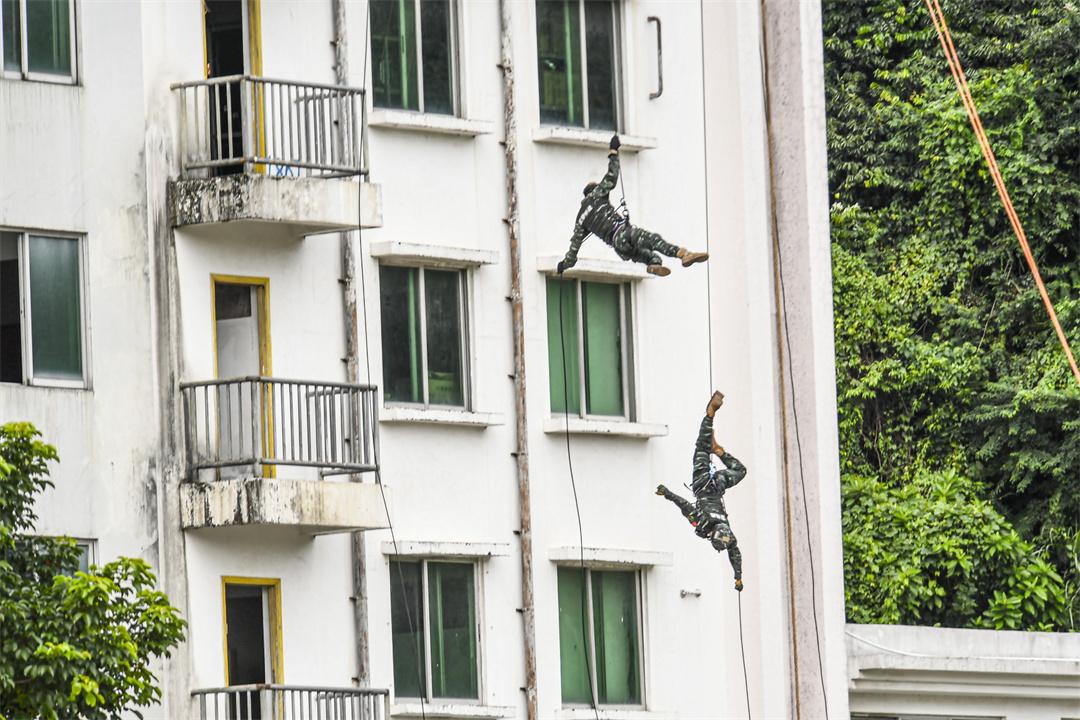 圖為官兵進(jìn)行攀登課目演示。