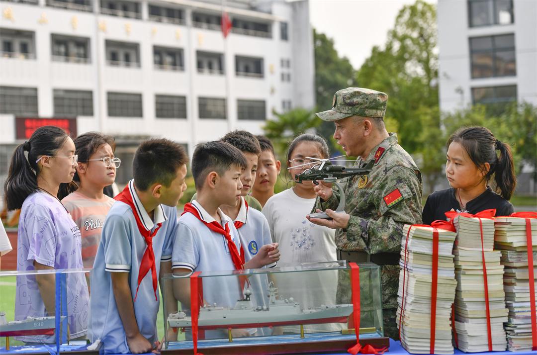 近日,安徽省合肥市廬陽區(qū)“全民國(guó)防教育月”活動(dòng)走進(jìn)三十崗鄉(xiāng)古城小學(xué),通過普及國(guó)防知識(shí)、觀摩裝備模型等,引導(dǎo)廣大青少年熱愛國(guó)防,增強(qiáng)國(guó)防意識(shí),提升國(guó)防素養(yǎng)。