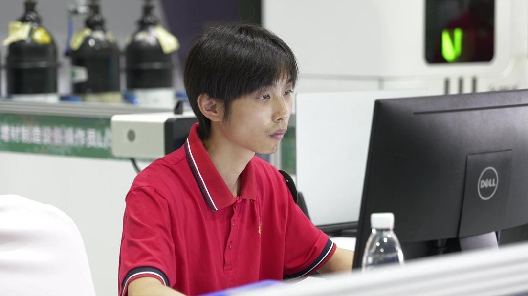 圖為本屆大賽增材制造設(shè)備操作員職工組第一名賀涵。