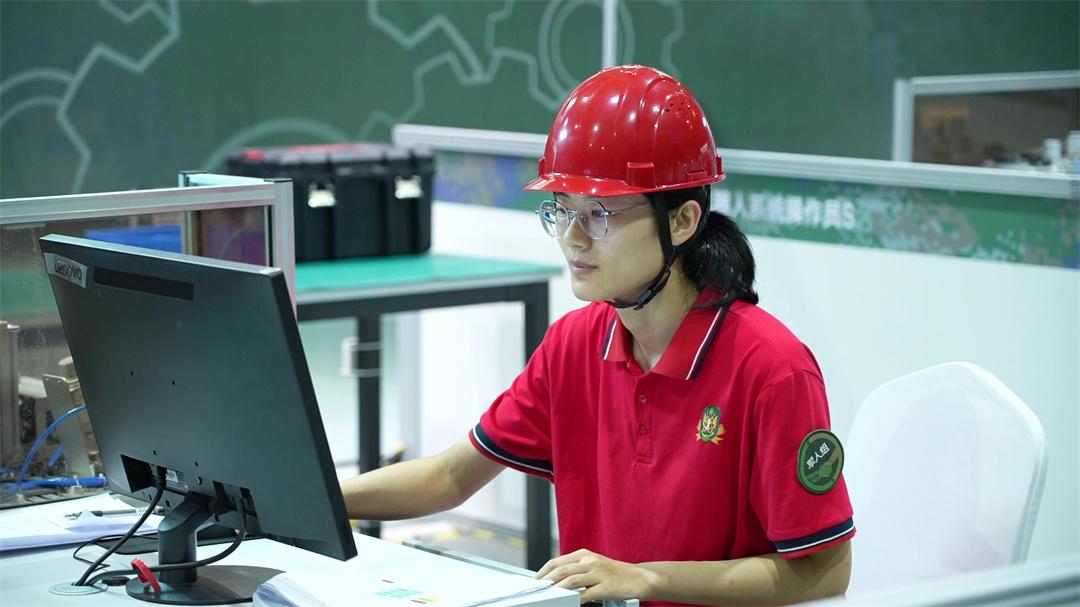 圖為本屆大賽工業(yè)機(jī)器人系統(tǒng)操作員軍人組第一名韓冰心。