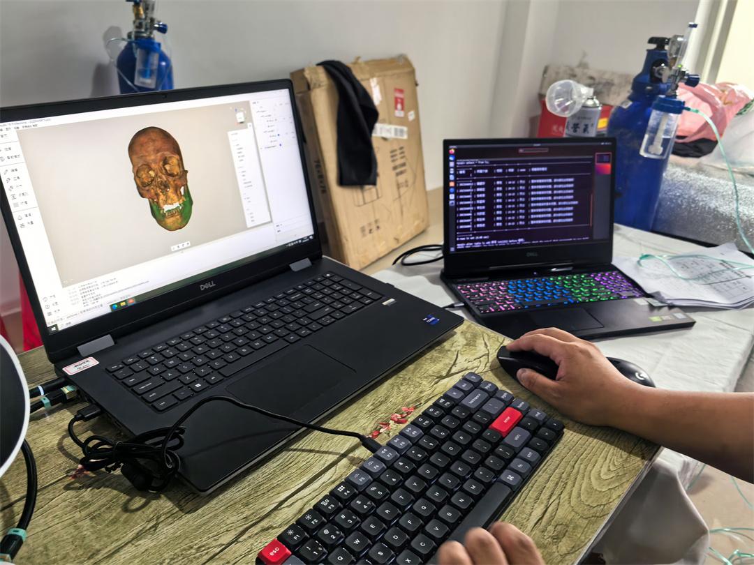 阿里地區(qū)氣候環(huán)境高寒干燥,相關(guān)遺骸顱骨大都相對(duì)保存完好。此次烈士容貌復(fù)原工作由復(fù)旦大學(xué)法庭科學(xué)研究院牽頭完成,現(xiàn)場(chǎng)采用3D激光掃描采集顱骨三維數(shù)據(jù)信息,融合運(yùn)用虛擬成像、AI大模型、多模態(tài)分析等前沿技術(shù)手段,盡可能復(fù)原烈士容貌,讓他們跨越時(shí)空與親人“重逢”。