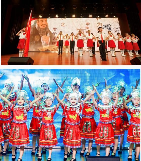 室內(nèi)舞臺(tái)上,精彩節(jié)目輪番上演,讓人目不暇接。詩(shī)歌朗誦《中國(guó)話》鏗鏘有力,京劇《貴妃醉酒》華麗細(xì)膩,女生表演唱《阿妹的苗寨》歡快動(dòng)人……每一個(gè)節(jié)目都是孩子們用心血和熱情澆灌的碩果,他們用自己的方式向祖國(guó)母親獻(xiàn)上最真摯的祝福。