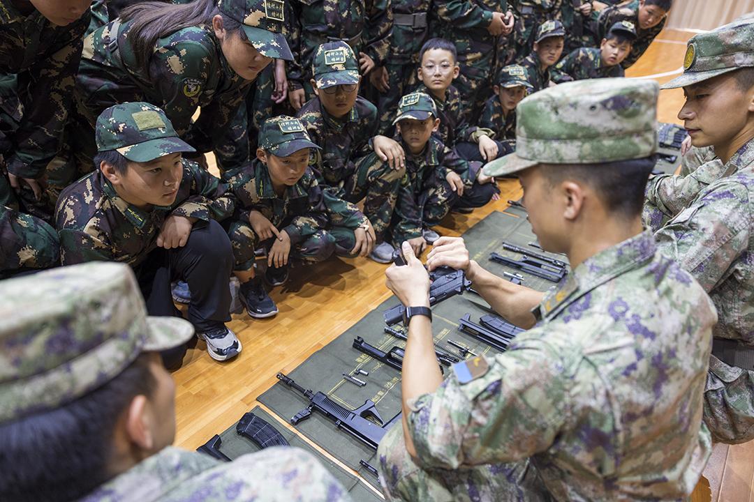 圖為武警廣東總隊開展“同心同行·強國有我”港澳青少年進軍營活動,港澳青少年參觀武器裝備。劉佳良 金家威 攝