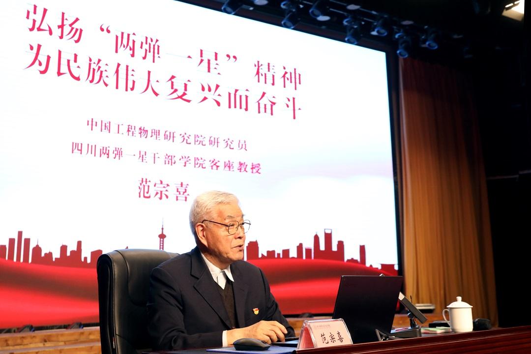 儀式結(jié)束后,少先隊員們參加了“兩彈一星”精神宣講報告會,“兩彈一星”老科學(xué)家范宗喜以“弘揚‘兩彈一星’精神、為民族偉大復(fù)興而奮斗”為主題進行宣講。