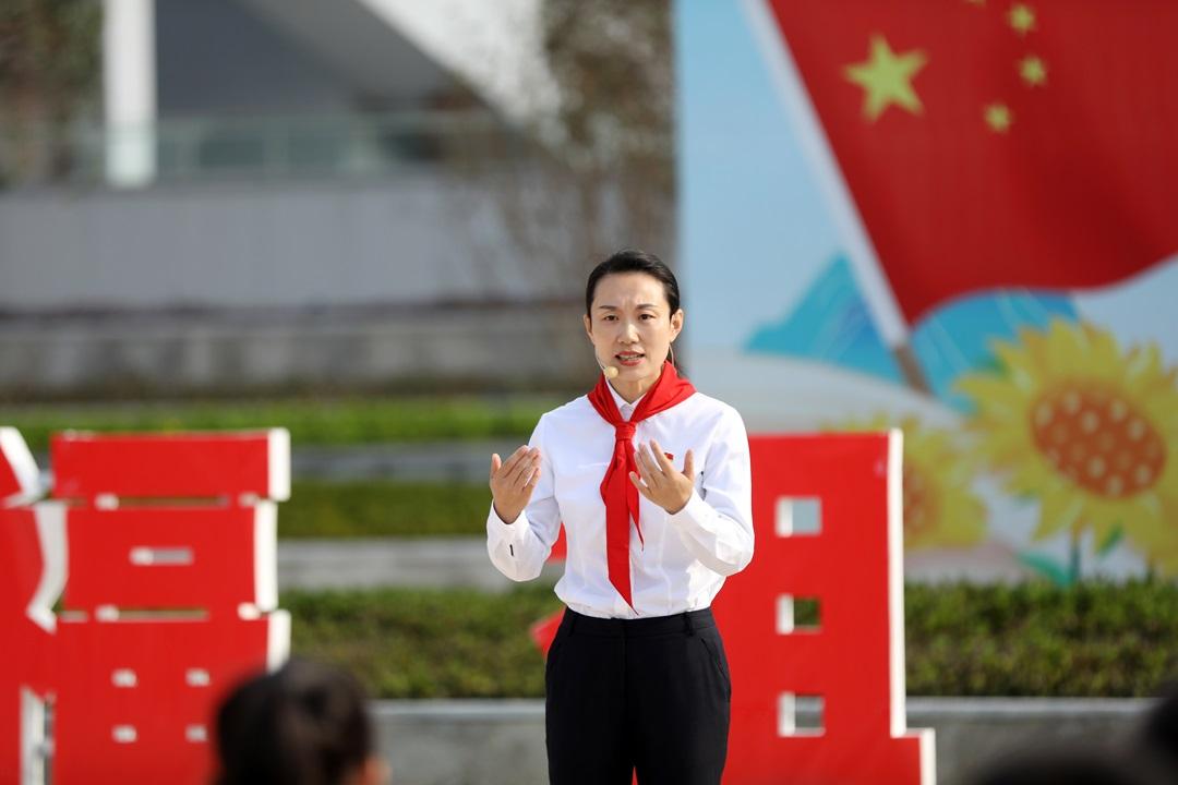 國旗下,全國紅領(lǐng)巾巡講團成員田慧以“第一顆原子彈爆炸成功背后的故事”為題進行宣講,激勵少先隊員們熱愛祖國,樹立遠大理想。綿陽高新區(qū)火炬實驗小學(xué)五(4)中隊少先隊員唐萌韓分享了參加“與航天員面對面”活動的感受,展現(xiàn)新時代少先隊員勇敢探索和對科學(xué)的執(zhí)著追求。