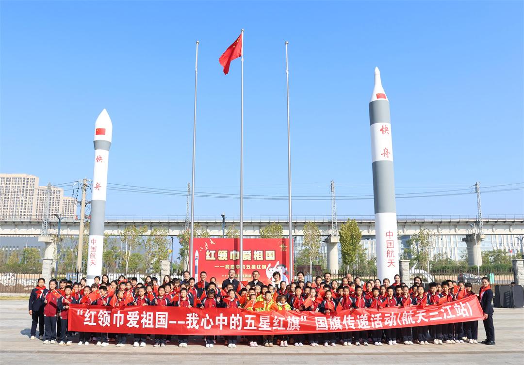 10月23日,“紅領(lǐng)巾愛祖國——我心中的五星紅旗”國旗傳遞活動在湖北省武漢國家航天產(chǎn)業(yè)基地快舟火箭產(chǎn)業(yè)園舉行。共青團湖北省委副書記徐本禹、湖北省少工委、共青團武漢市委、武漢市新洲區(qū)、中國航天三江集團有限公司及所屬航天科工火箭技術(shù)有限公司等相關(guān)負(fù)責(zé)同志及代表,武漢市新洲區(qū)雙柳街中心小學(xué)、武漢市十一實驗學(xué)校少先隊員、少先隊輔導(dǎo)員代表共計100余人參加活動。
