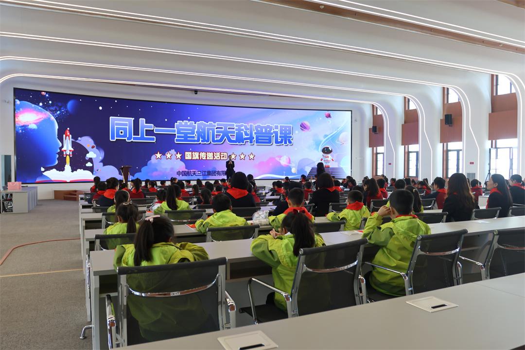 升旗儀式結(jié)束后,來自航天科工火箭技術(shù)有限公司的青年科技工作者唐詩,為少先隊員們上了一堂科普課,從載人航天和可回收火箭等熱門話題引入,講解了快舟火箭的誕生和發(fā)展,介紹了東方紅、北斗、嫦娥、天宮等國家重大航天項目。圍繞“紅領(lǐng)巾愛祖國”主題,少先隊員們現(xiàn)場進行熱烈互動和交流。