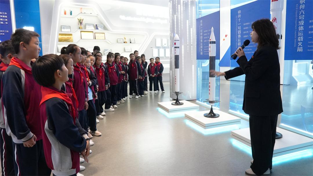 隨后,少先隊員們現(xiàn)場參觀了快舟固體運載火箭,并到火箭公司科普展廳開展見學(xué),豐富翔實的圖文資料、視頻動畫、快舟系列火箭模型等,展示了中國航天事業(yè)輝煌成就、快舟火箭發(fā)展歷程,以及人類對未來太空探索的夢想。