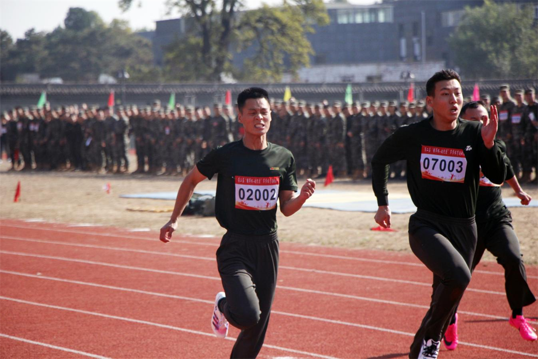 伴隨著發(fā)令槍響起,百米“飛人大戰(zhàn)”爭奪賽一炮打響,參賽官兵猶如離弦之箭沖出起跑線,起跑、反超、加速、沖刺……戰(zhàn)士孫程浩憑借著過硬的體能素質(zhì),以微弱優(yōu)勢率先沖過終點,全場熱烈沸騰。