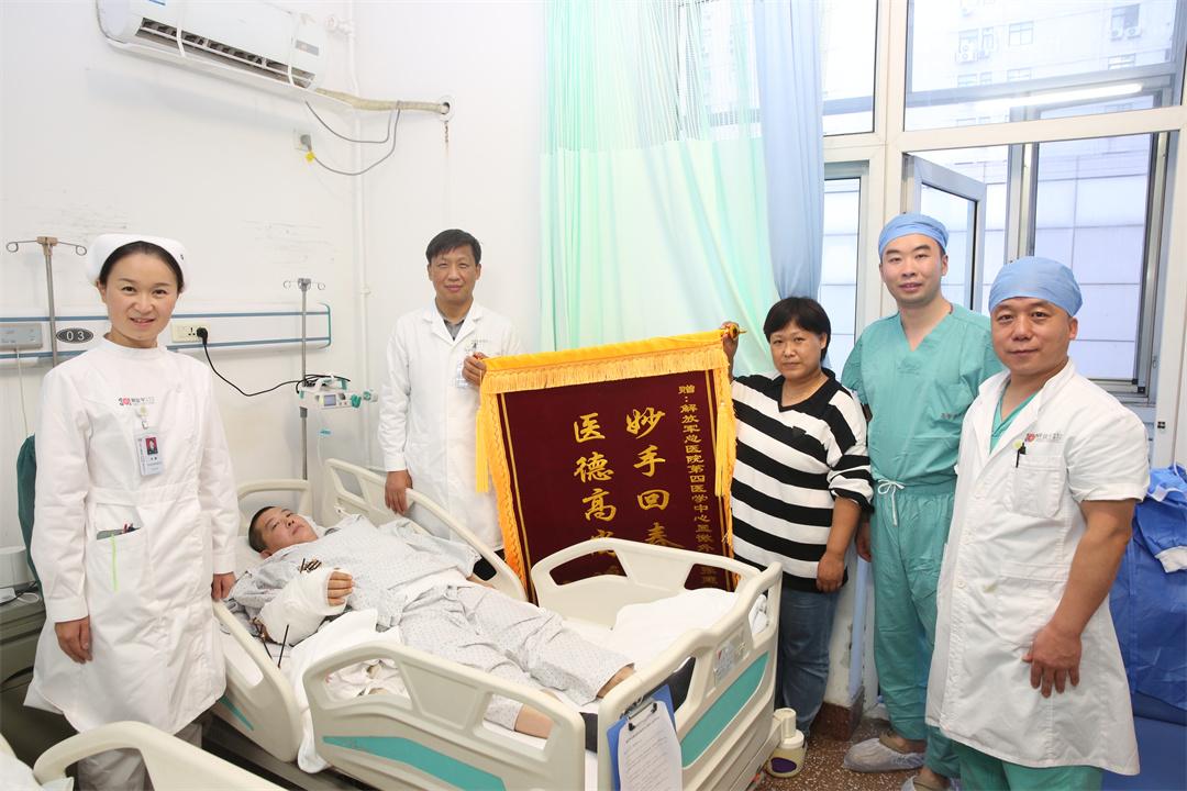 “解放軍總醫(yī)院骨科專家真是妙手回春,本以為只能保住命,沒想到斷掉的手臂還能奇跡般‘復(fù)活’。”近日,傷者王某的妻子將一面錦旗送到第四醫(yī)學(xué)中心骨科醫(yī)學(xué)部顯微外科主任張建政手中,表達(dá)全家人的感激之情。