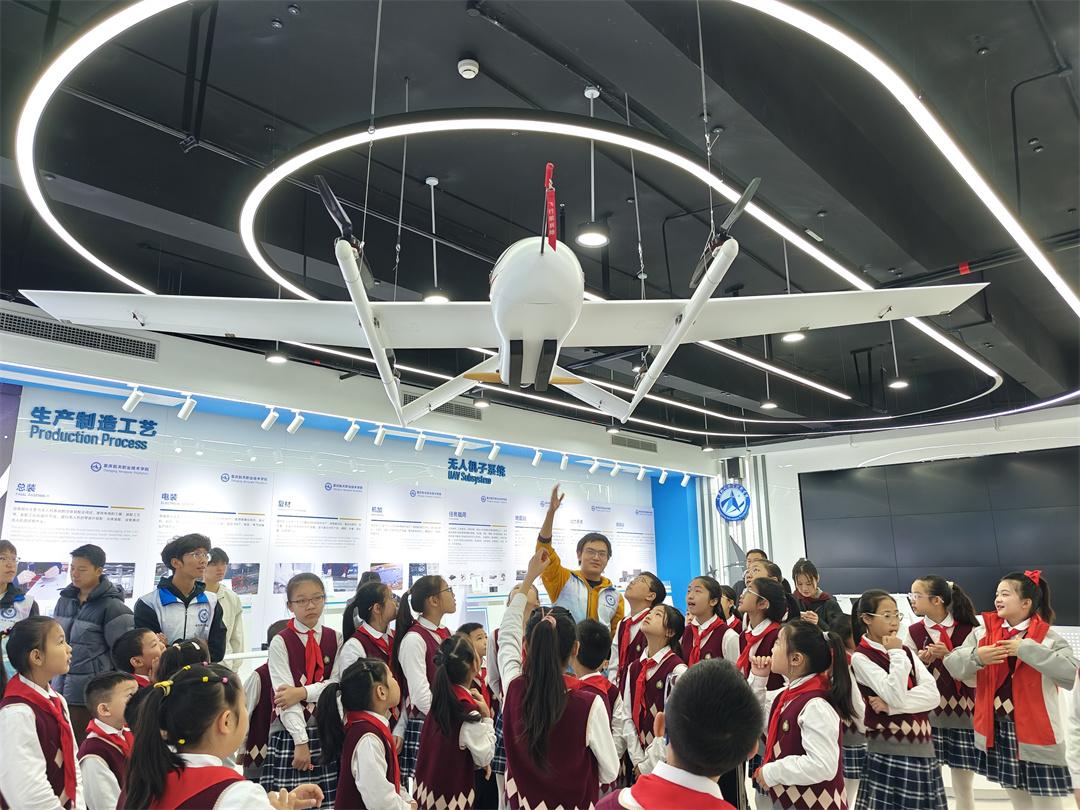 會前,在航天科技集團七院重慶航天職業(yè)技術(shù)學(xué)院青年志愿者帶領(lǐng)下,少先隊員們先后參觀了學(xué)校航天文化展示中心,無人機、航空維修實訓(xùn)基地、衛(wèi)星通信與導(dǎo)航實訓(xùn)基地等,通過老師和志愿者們生動有趣地講解,讓青少年們更加深入地了解航天知識,激發(fā)他們對航天科學(xué)的濃厚興趣與探索欲望。