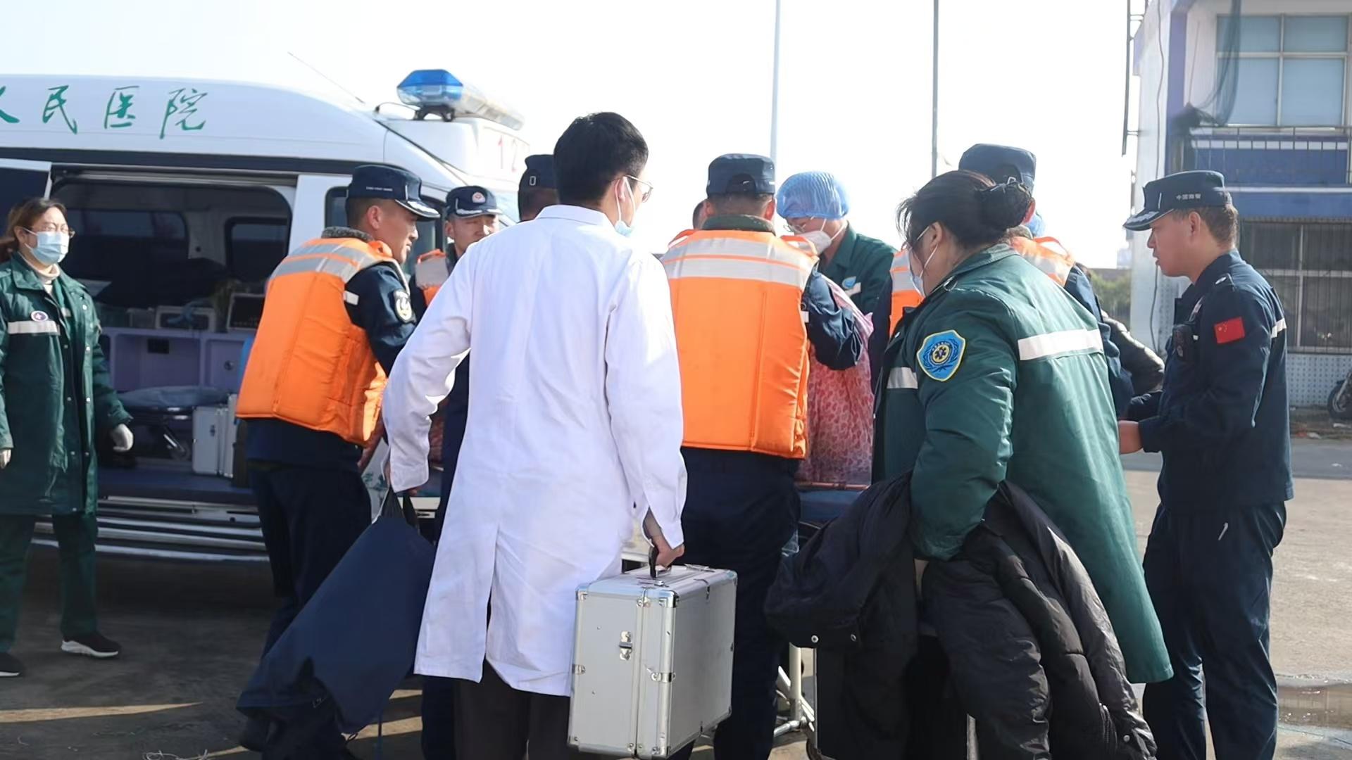9時(shí)45分,白石艇靠泊榮成第二工作站碼頭。早已在此等候的當(dāng)?shù)?20救護(hù)車將8名船員轉(zhuǎn)運(yùn)至當(dāng)?shù)蒯t(yī)院。經(jīng)過(guò)醫(yī)院全力救治,6人身體狀況穩(wěn)定,1人不幸失去生命體征,另1人仍在搶救中。