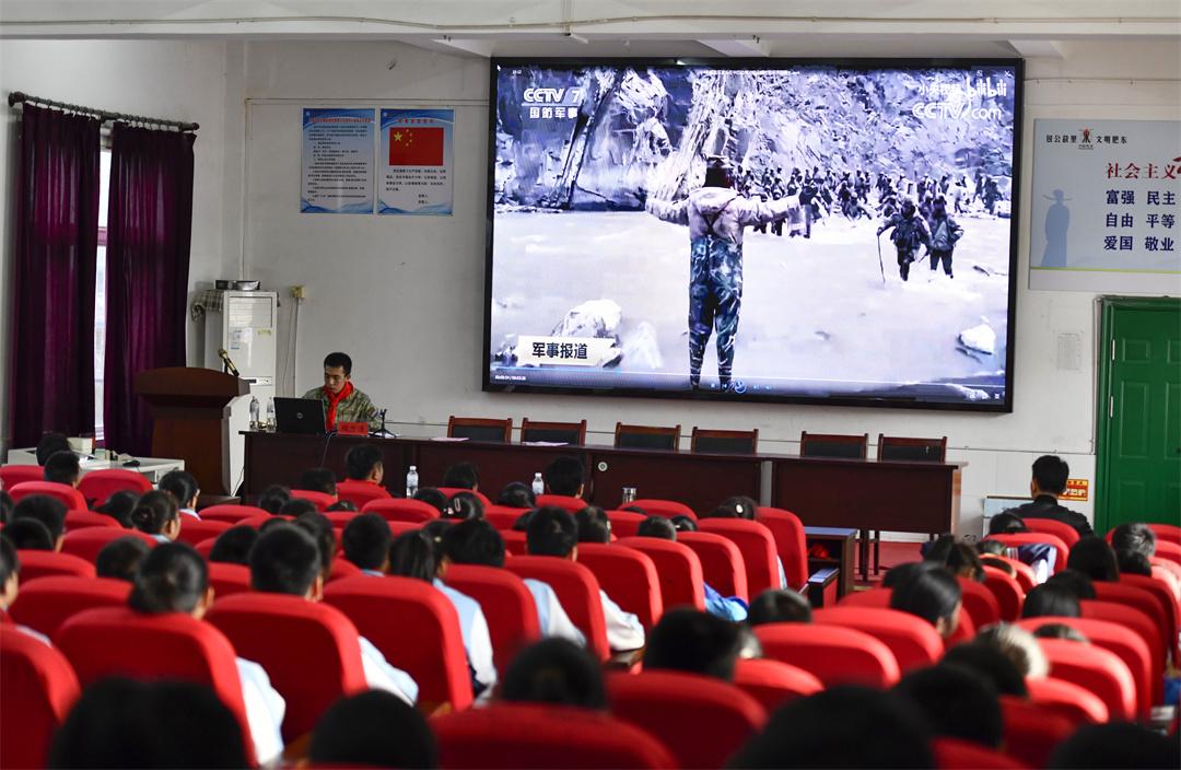 圖為在肥東縣長(zhǎng)臨河學(xué)校中心小學(xué),孩子們聆聽英雄故事。