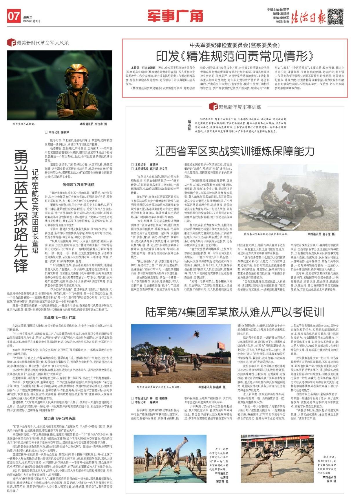 近日,中央軍委紀(jì)律檢查委員會(監(jiān)察委員會)印發(fā)《精準(zhǔn)規(guī)范問責(zé)常見情形》,深入貫徹中央軍委政治工作會議精神,著力提高執(zhí)紀(jì)問責(zé)工作規(guī)范化精準(zhǔn)度,督促和激勵(lì)各級黨組織、黨員領(lǐng)導(dǎo)干部認(rèn)真履職、擔(dān)當(dāng)作為。