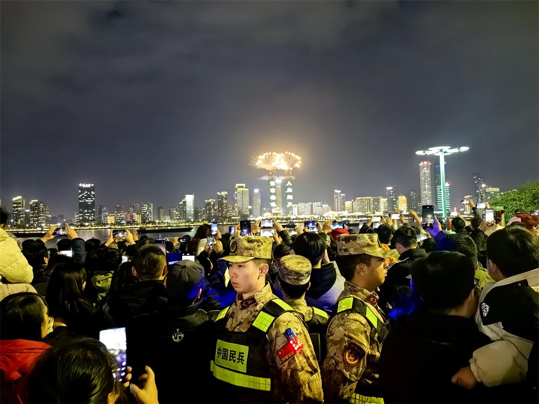 值得一提的是,此次迎春煙花晚會(huì)活動(dòng)有不少民兵主動(dòng)請(qǐng)纓,要求上崗執(zhí)勤?!叭f家燈火時(shí),正是我們守護(hù)的時(shí)刻,能與戰(zhàn)友們一起為大家的歡樂保駕護(hù)航,這是我的驕傲。”執(zhí)勤民兵周道堅(jiān)定地說?,F(xiàn)場(chǎng),各點(diǎn)位執(zhí)勤民兵沿著護(hù)欄整齊地“一”字形散開,定點(diǎn)執(zhí)勤與巡邏警戒雙管齊下,時(shí)刻保持警惕,不放過任何異常情況。