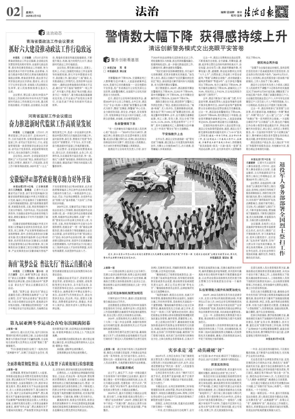 記者2月14日從退役軍人事務(wù)部獲悉,2月13日,退役軍人事務(wù)部聯(lián)合公安部、交通運輸部、文化和旅游部召開全國烈士祭掃工作視頻會議,部署2025年烈士祭掃工作。