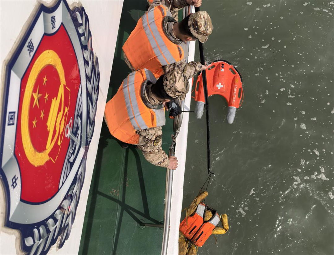 圖為執(zhí)法員實施海上落水人員搜救訓練。