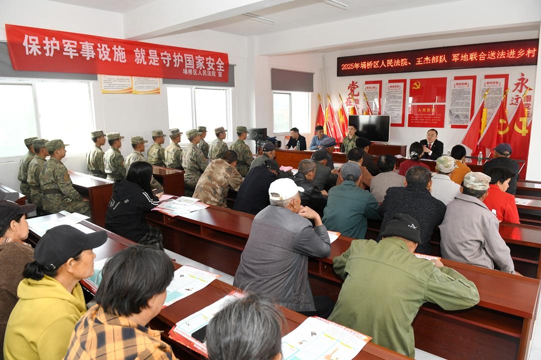 圖為法官就軍事設(shè)施保護向群眾進行細(xì)心講解。