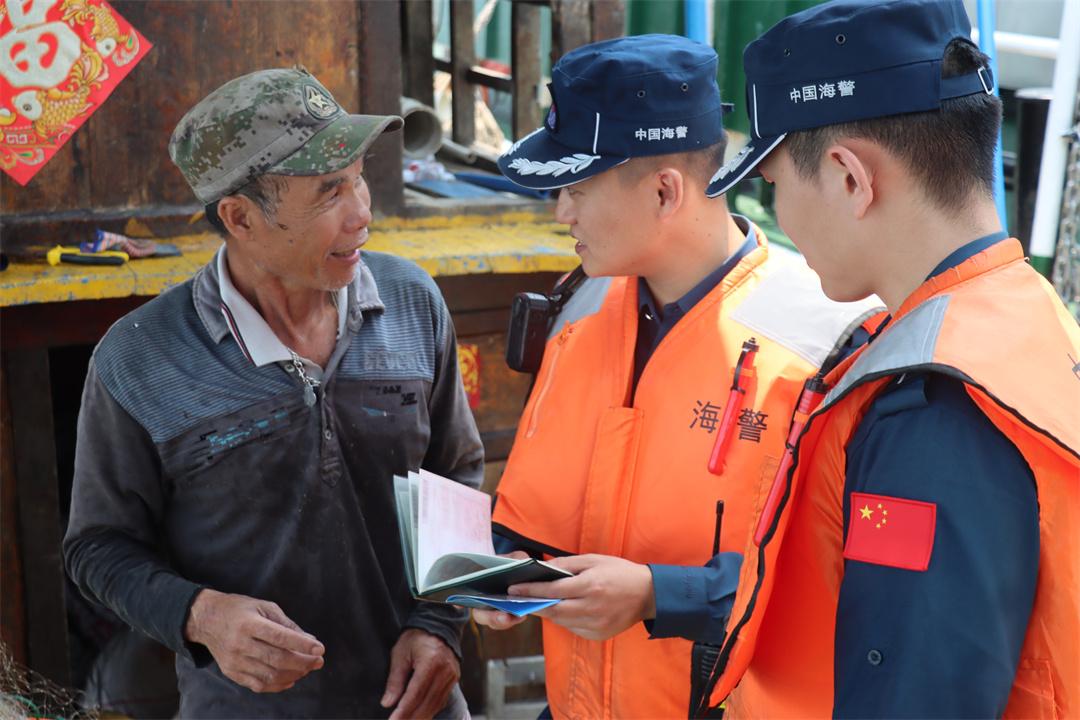 圖為執(zhí)法員為漁民群眾講解休漁規(guī)定。