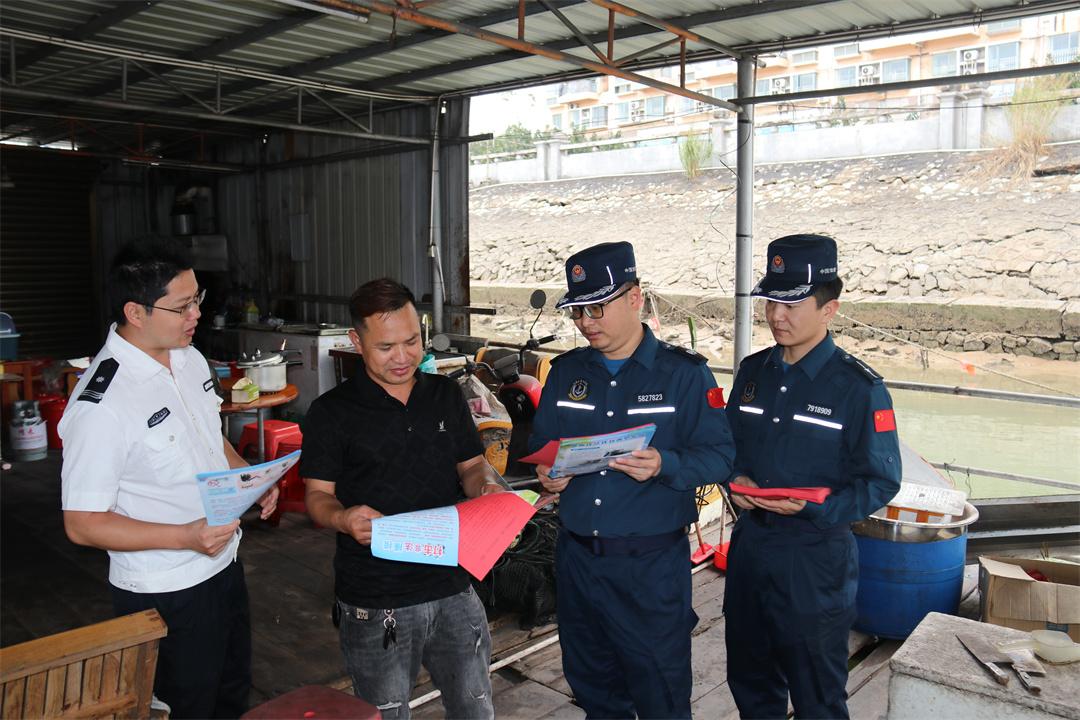 圖為執(zhí)法員上漁船宣傳。