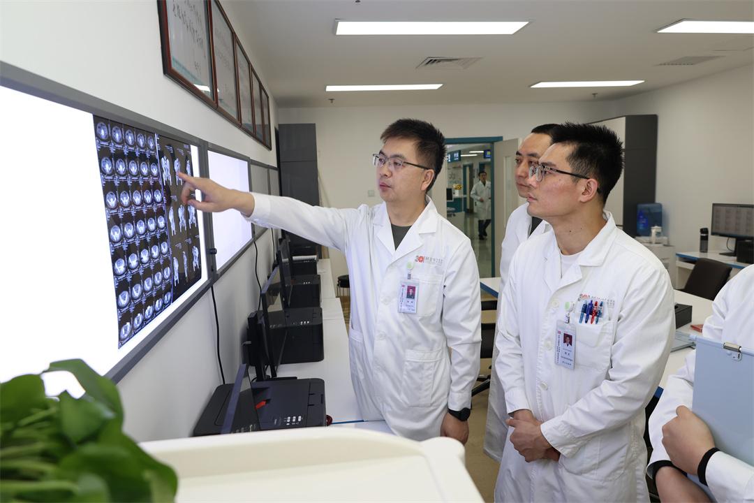 圖為陳華主任團(tuán)隊查看患者恢復(fù)情況。鞠文富 攝