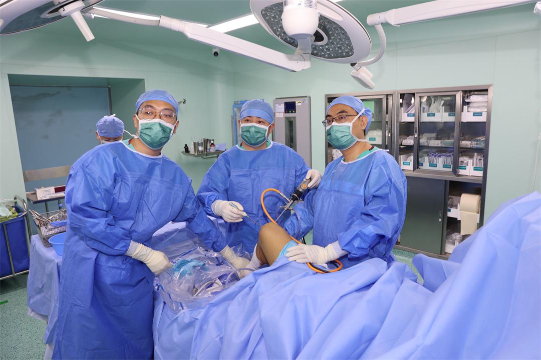 為盡量降低手術創(chuàng)傷,進一步提高手術療效,讓小向更快康復返回訓練場,李海鵬制定新手術方案。手術開始后,李海鵬操縱關節(jié)鏡建立入路,運用止點縫合修復的方法,在一側攝像頭的清晰展示下精準找到受傷韌帶。探鉤檢查韌帶具體受傷情況,用高強度縫線縫合受傷韌帶,縫線尾端通過縫合錨釘固定到股骨止點處,發(fā)現(xiàn)傷處恢復良好張力。與傳統(tǒng)手術相比,具有時間短、痛苦小、恢復快的明顯優(yōu)勢,術后3天患者順利出院。
