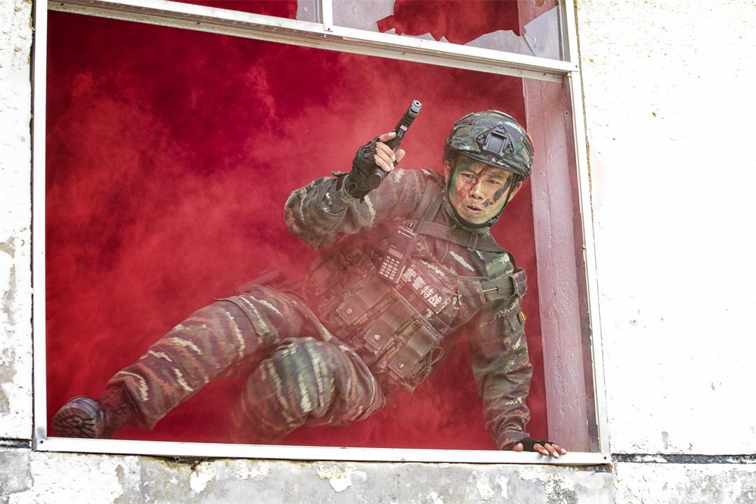 圖為李興坤正在進(jìn)行戰(zhàn)斗演練。吳哲明 攝