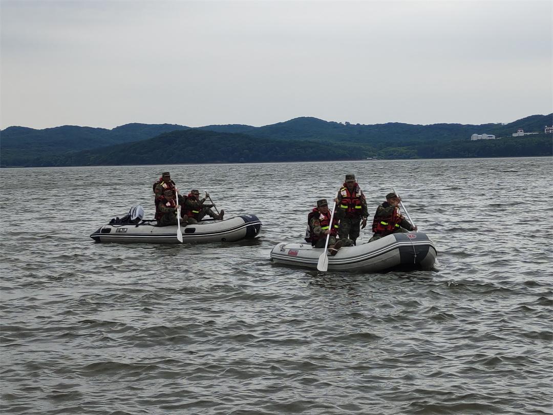 “報告,前方水域發(fā)現(xiàn)落水人員?!薄鞍搭A(yù)定方案迅速前出處置?!薄笆?!”接收指令后,七臺河軍分區(qū)民兵應(yīng)急連副指導(dǎo)員王彥斌帶領(lǐng)三區(qū)隊十班全體民兵,迅速駕駛沖鋒舟前出搜救。由于水面寬廣、水流湍急,經(jīng)過幾次打撈,沖鋒舟都難以有效靠近預(yù)定目標(biāo)。水上搜救人員與駐岸保障人員通過對講機(jī)聯(lián)通后,一架無人機(jī)即時飛往出事水域。保障人員按照傳輸畫面逐幀分析,指導(dǎo)搜救人員利用水上機(jī)器人將落水者成功搭救返航。