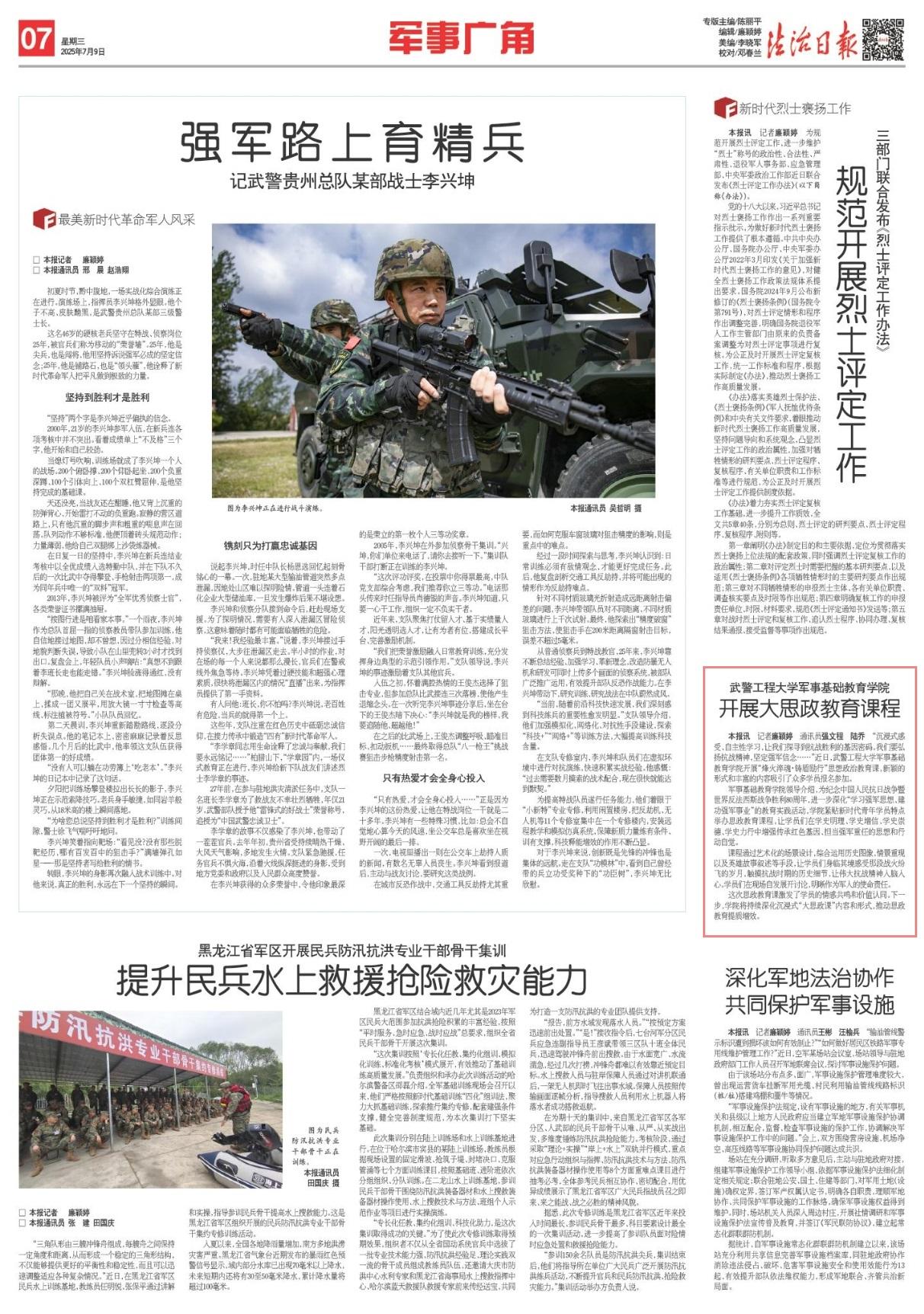 “沉浸式感受、自主性學(xué)習(xí),讓我們探尋到抗戰(zhàn)勝利的基因密碼。我們要弘揚(yáng)抗戰(zhàn)精神,堅(jiān)定強(qiáng)軍信念……”近日,武警工程大學(xué)軍事基礎(chǔ)教育學(xué)院開展“烽火淬魂·鑄盾勵(lì)行”思想政治教育課,新穎的形式和豐富的內(nèi)容吸引了眾多學(xué)員報(bào)名參加。
