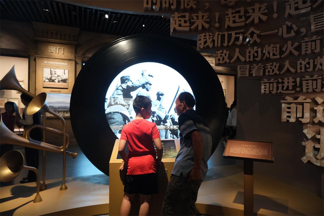 “雖然孩子還小,但我希望早點培養(yǎng)他的愛國意識。這次展覽就是很好的機會,能夠讓他更直觀地接受愛國主義熏陶?!睒窐返膵寢尭嬖V記者。