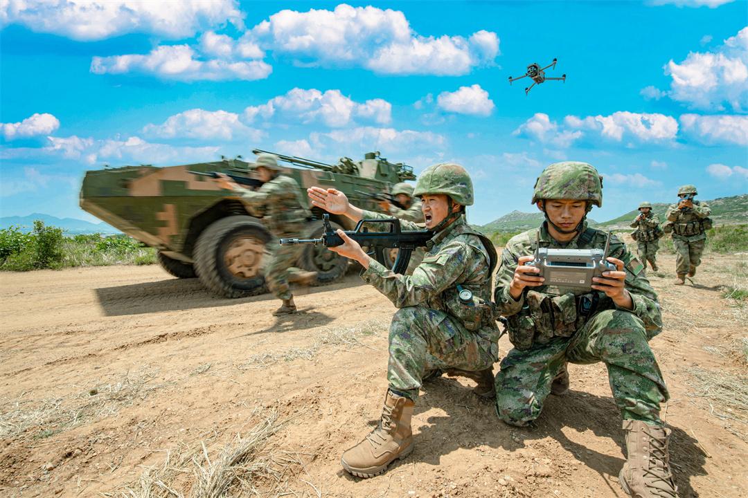 渤海灣畔某訓(xùn)練場,擔(dān)負(fù)尖刀任務(wù)的連隊(duì)快速向縱深挺進(jìn)??罩袀刹臁o人破障、協(xié)同沖擊……面對藍(lán)軍重重防御,連長閻偉見招拆招,熟練指揮突破“敵”陣。