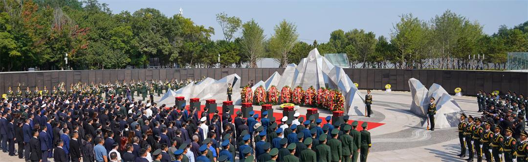 9月13日10時(shí),安葬儀式開(kāi)始。陵園下沉式紀(jì)念廣場(chǎng)環(huán)形烈士英名墻下,擺滿(mǎn)黃白相間的菊花,參加儀式的人們肅穆站立。軍樂(lè)隊(duì)奏響婉轉(zhuǎn)低回的《思念曲》,在解放軍儀仗司禮大隊(duì)官兵持槍護(hù)衛(wèi)下,禮兵們邁著整齊的步伐,護(hù)送志愿軍烈士遺骸棺槨緩步進(jìn)入紀(jì)念廣場(chǎng),全場(chǎng)奏唱中華人民共和國(guó)國(guó)歌。