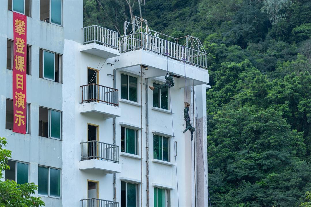圖為武警官兵正在進行攀登課目演示。劉佳良 攝