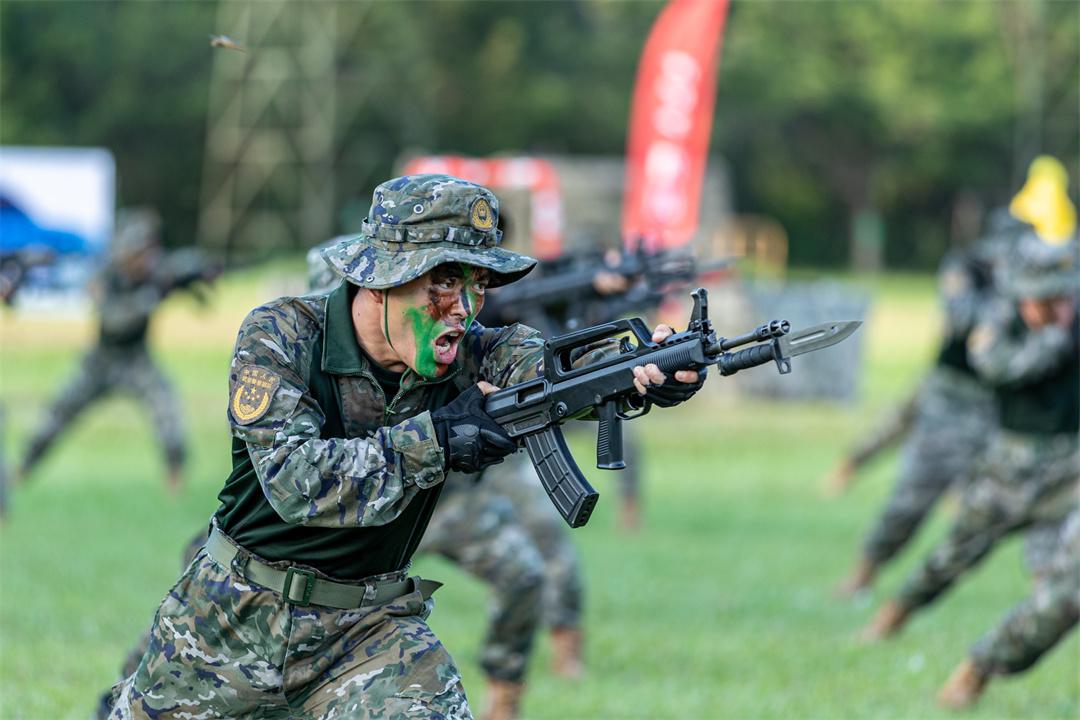 這是諸多軍事課目演示之一。今年,武警廣東總隊精心設(shè)計了包含武術(shù)、刺殺、射擊等7類30余個課目的演示內(nèi)容,并組織武器裝備展示和體驗、部隊宿舍參觀、學(xué)疊軍被等互動環(huán)節(jié)。