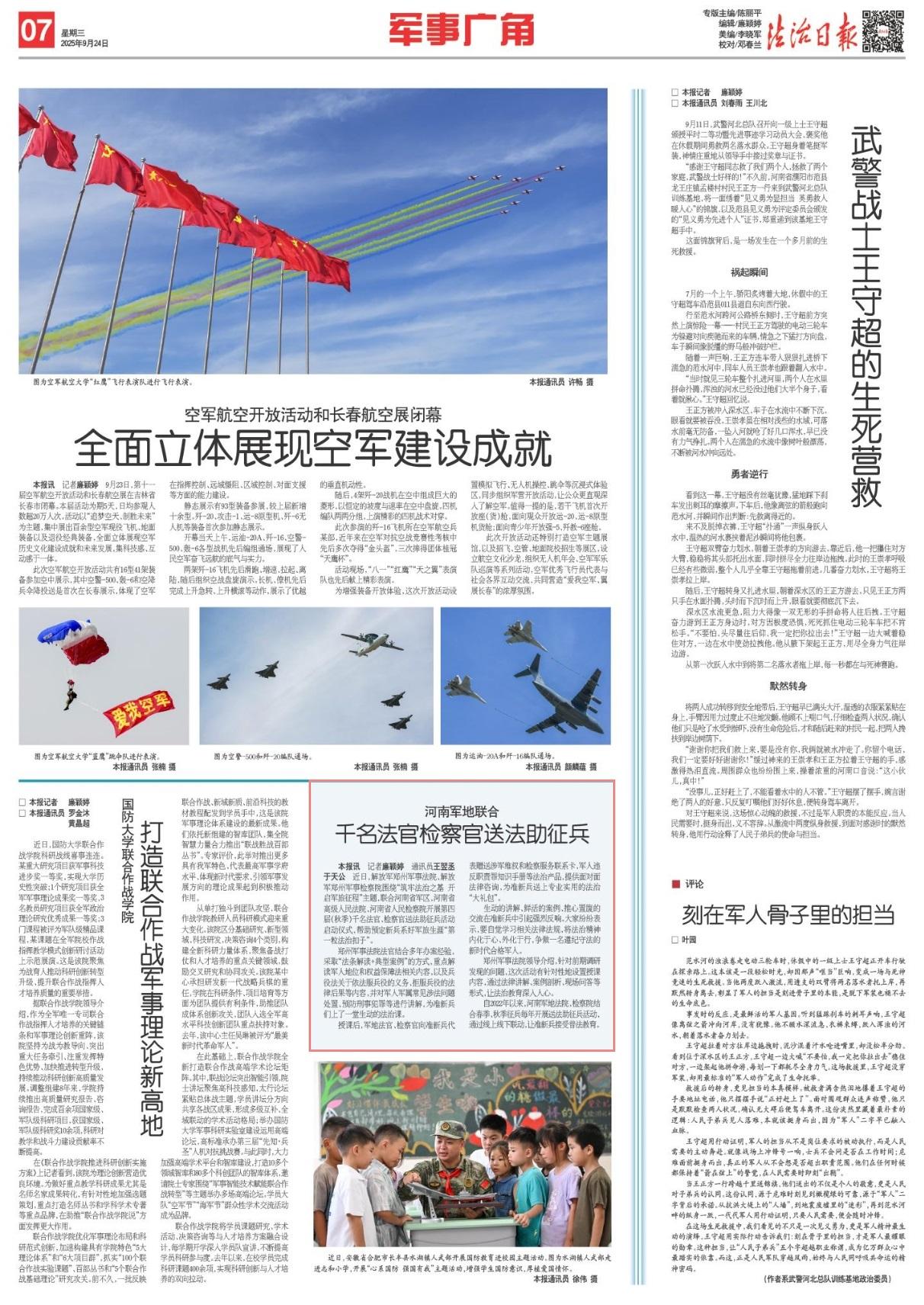 自2022年以來,河南軍地法院、檢察院結(jié)合春季、秋季征兵每年開展送法助征兵活動,通過線上線下聯(lián)動,讓準新兵接受普法教育。