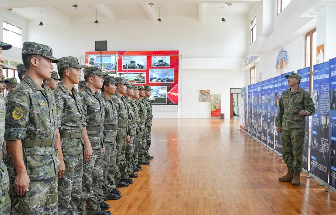 圖為哈爾濱軍事法院法官為陸軍某部官兵講授法治教育課。袁帥 攝