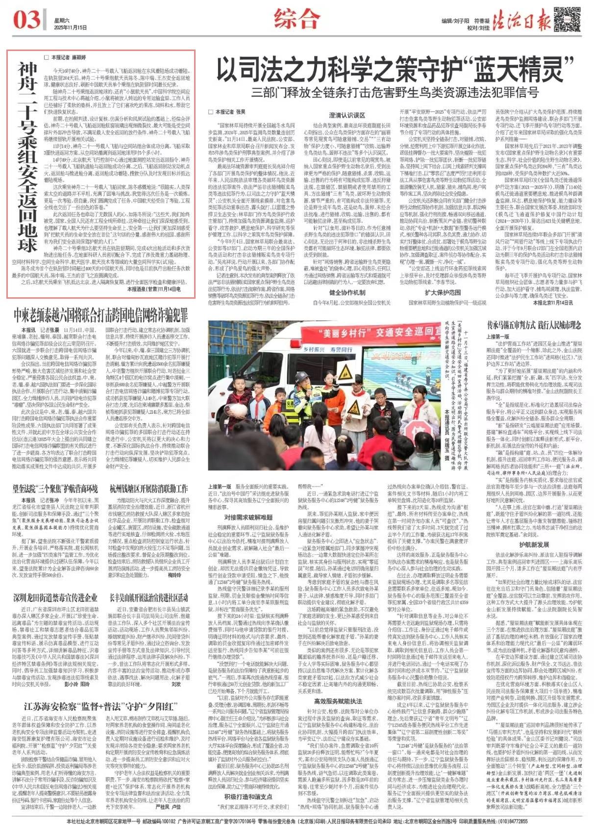 11月14日16時(shí)40分,神舟二十一號(hào)載人飛船返回艙在東風(fēng)著陸場(chǎng)成功著陸。在軌駐留204天后,神舟二十號(hào)乘組航天員陳冬、陳中瑞、王杰安全返回地球,健康狀態(tài)良好,刷新中國航天員單個(gè)乘組在軌駐留時(shí)間最長(zhǎng)紀(jì)錄。
