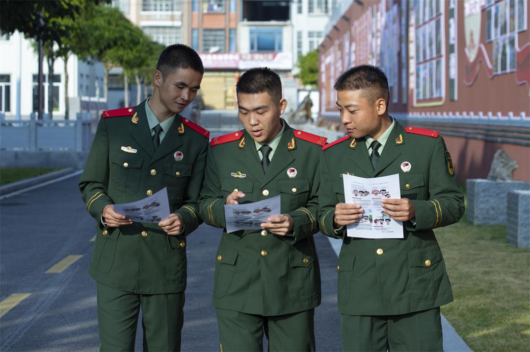 圖為官兵對法律宣傳單內(nèi)容進行學習。唐明洋 攝