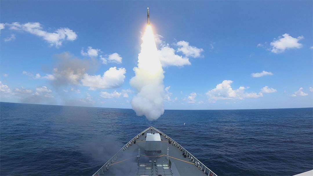 演習(xí)當(dāng)天,包頭艦向預(yù)定海域行駛。控制室內(nèi),雷達(dá)偵測(cè)發(fā)現(xiàn)不明目標(biāo)正向編隊(duì)抵近?!凹訌?qiáng)對(duì)空警戒,加強(qiáng)低空快速小目標(biāo)搜索?!彪S著指揮員下達(dá)指令,各戰(zhàn)位快速展開(kāi)操作。不多時(shí),導(dǎo)彈破空而出,精準(zhǔn)命中目標(biāo)。
