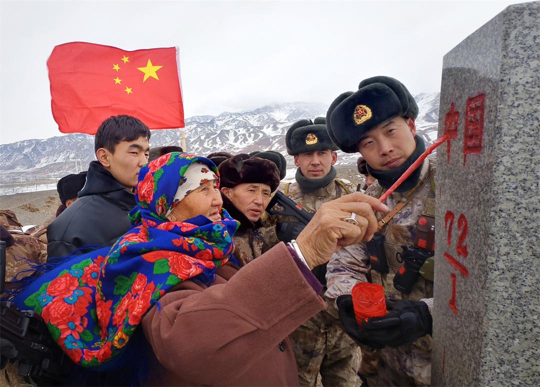 一生只做一件事,我為祖國(guó)守邊防。從19歲起,布茹瑪汗便行走在海拔四千多米的冬古拉瑪山口。早年邊境標(biāo)識(shí)不明,她從連隊(duì)官兵那里學(xué)會(huì)書(shū)寫(xiě)“中國(guó)”二字。此后數(shù)十載,她用尖石與割馬蹄的小刀,在巡邊路旁的石塊上一筆一畫(huà)刻下“中國(guó)”這兩個(gè)字。