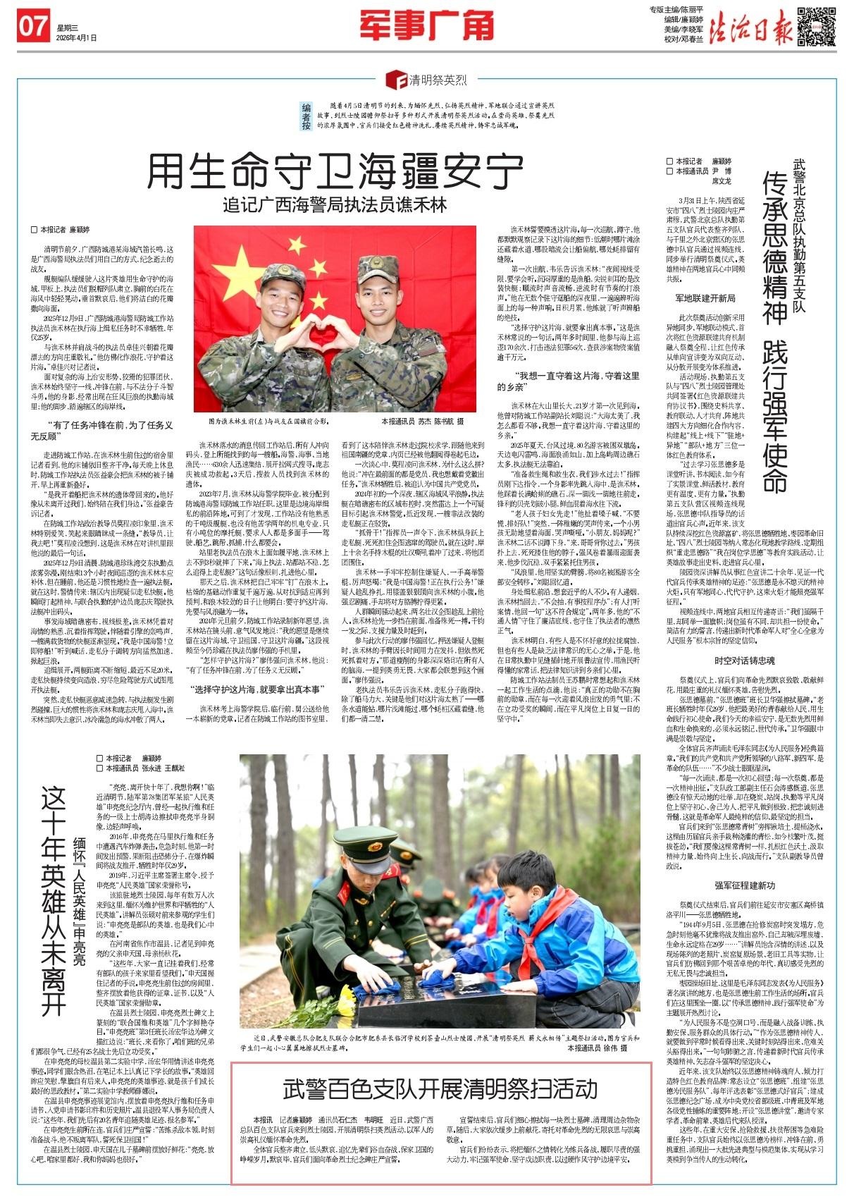 近日,武警廣西總隊(duì)百色支隊(duì)官兵來到烈士陵園,開展清明祭掃英烈活動(dòng),以軍人的崇高禮儀緬懷革命先烈。