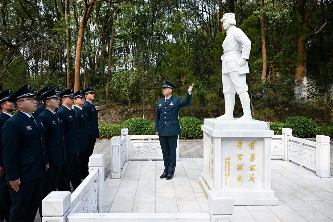 圖為王江帆和同事們?cè)诩t色教育基地上饒集中營接受愛國主義教育,了解烈士事跡。