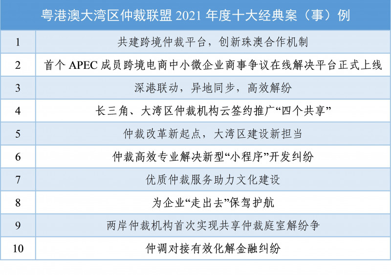 去年11月,聯(lián)盟專(zhuān)門(mén)發(fā)布了《珠海國(guó)際仲裁院服務(wù)橫琴粵澳深度合作區(qū)建設(shè)實(shí)施方案》,用以指引合作區(qū)仲裁活動(dòng)中如何適用內(nèi)地或澳門(mén)法律解決民商事?tīng)?zhēng)議,同時(shí)評(píng)選出“2021年度十大經(jīng)典案(事)例”,涵蓋“共建跨境仲裁平臺(tái),創(chuàng)新珠澳合作機(jī)制”等案(事)例內(nèi)容。