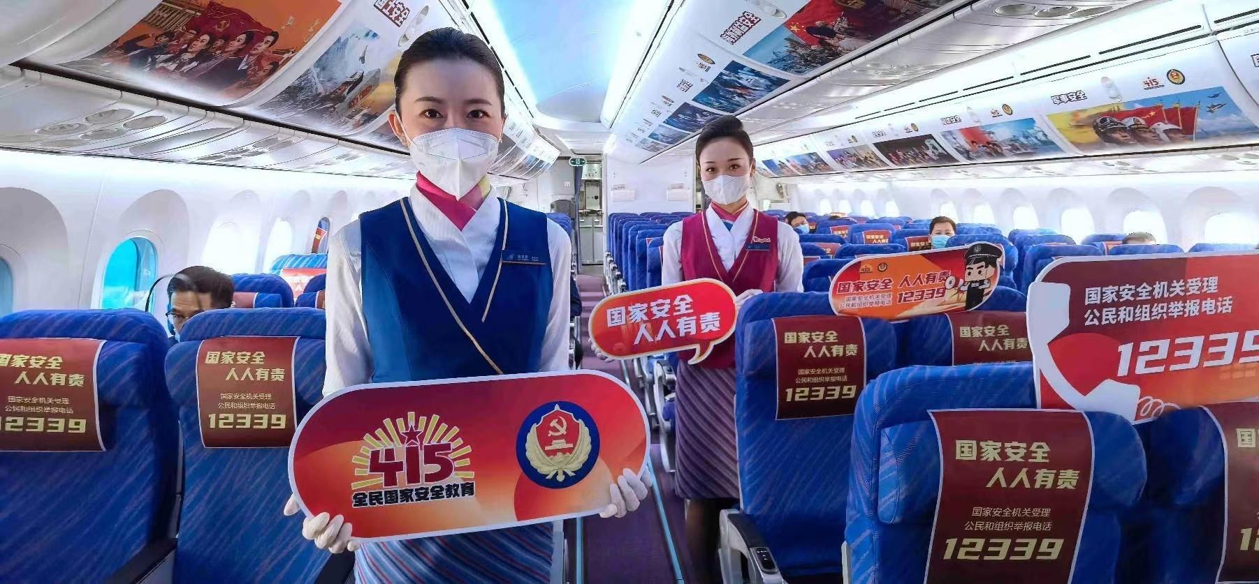 為了全面加強國家安全教育,南方航空“國安號”主題國內航班同步啟動,通過展示總體國家安全觀百米圖鑒、發(fā)放“國安號”紀念航模和動漫宣傳冊、有獎問答等多種形式,打造國家安全宣傳教育“空中課堂”?!拔抑溃瑖野踩珯C關受理公民和組織舉報電話是12339!”在起飛前的有獎問答環(huán)節(jié)中,和父母乘機赴京旅游的張同學積極舉手回答,并領到了獎品“粵小安”紀念公仔,他高興地說道:“這次飛行太有意義了,我要把宣傳冊分享給我學校的同學們,告訴他們國家安全人人有責?!?/p>