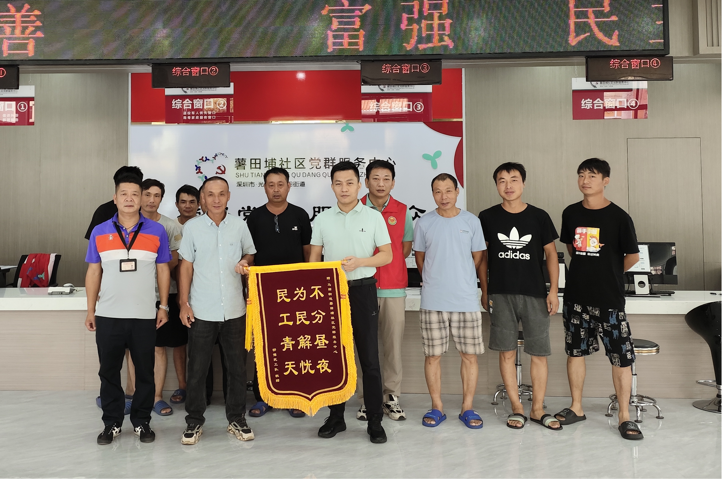 “謝謝你們幫我們拿到了工資,幫我們辦了件大實(shí)事、大好事?!苯?,廣東省光明區(qū)馬田街道薯田埔社區(qū)數(shù)名勞動(dòng)者為感謝社區(qū)“紅色小分格”協(xié)助其化解勞資糾紛,將錦旗送至工作人員手中。