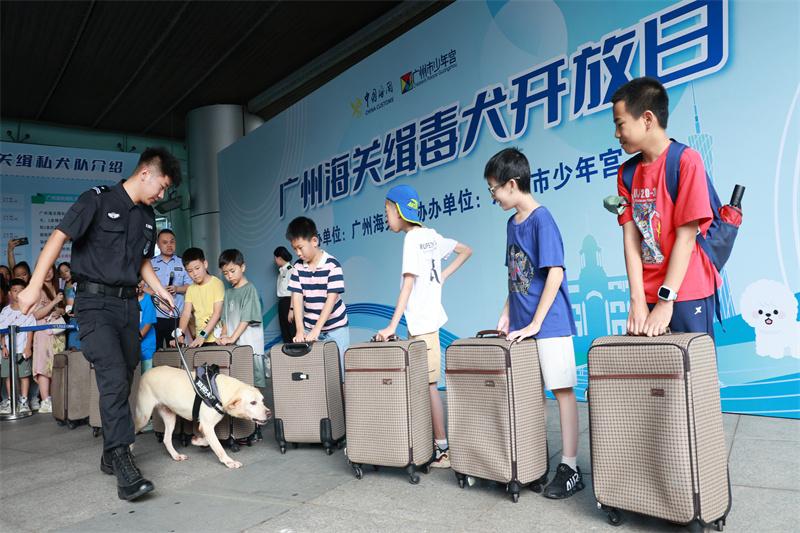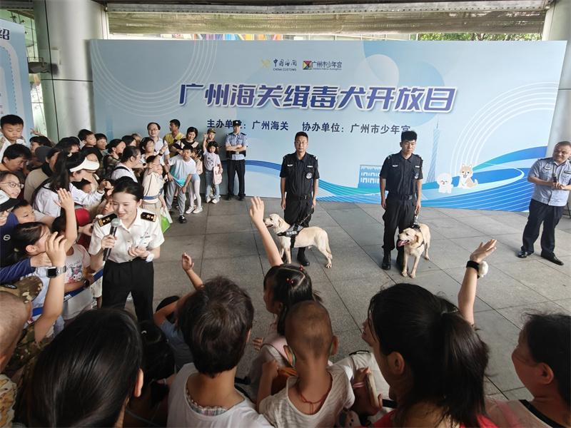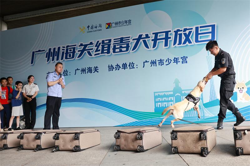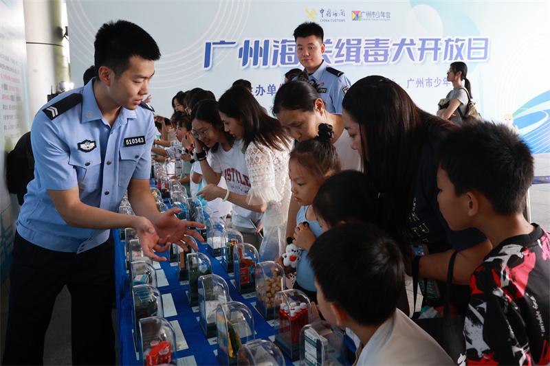 6月22日,廣州海關(guān)聯(lián)合廣州市少年宮舉辦“緝毒犬開放日”活動(dòng),通過寓教于樂的禁毒宣傳活動(dòng),讓廣大市民朋友在趣味游戲中了解海關(guān)打擊毒品走私工作成效、禁毒常識(shí),并與海關(guān)緝毒犬進(jìn)行現(xiàn)場(chǎng)親密互動(dòng),活動(dòng)吸引了400余名市民參加。