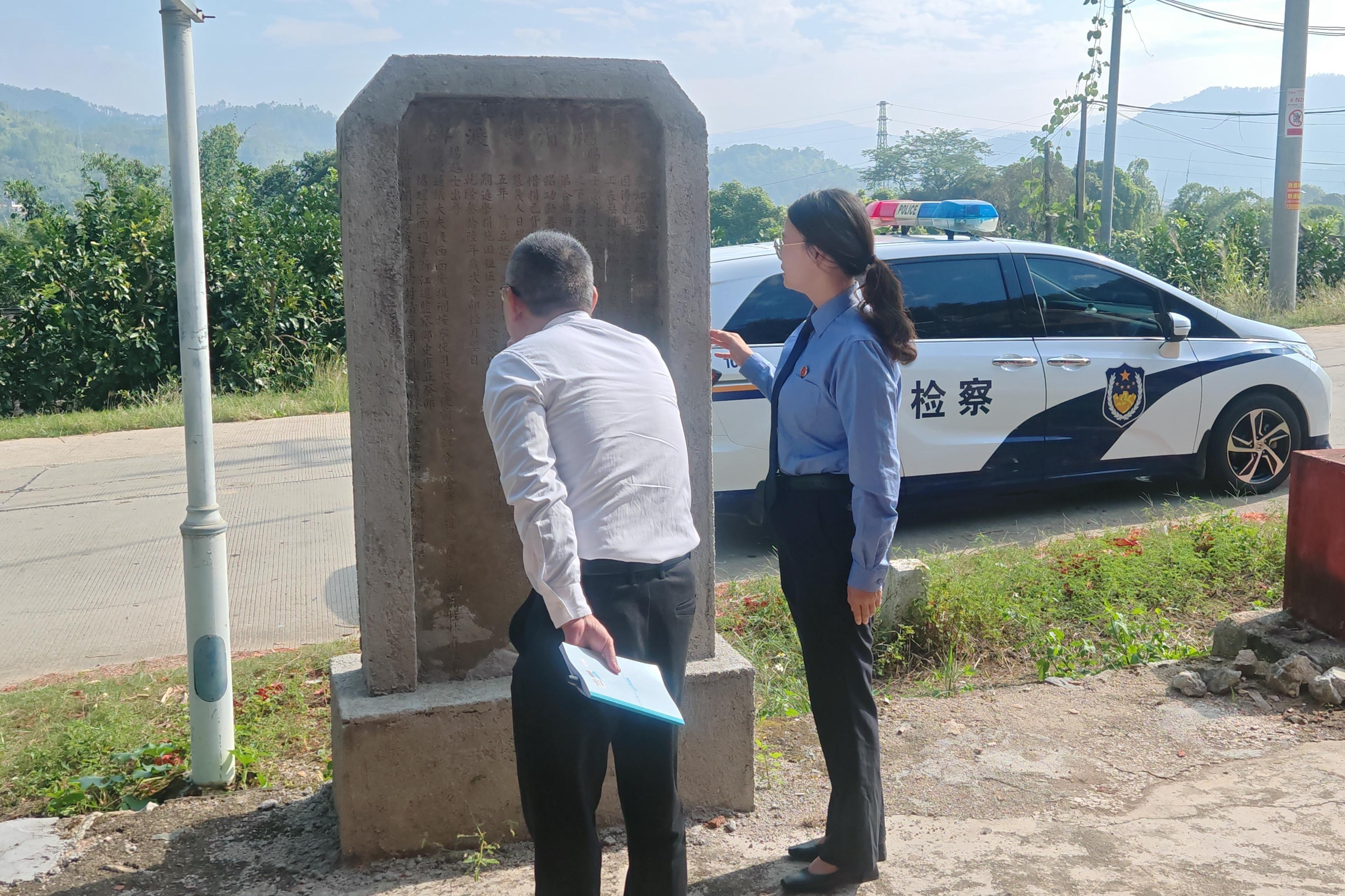 4月10日,大埔縣人民檢察院向縣文廣旅體局及屬地鎮(zhèn)政府制發(fā)檢察建議,明確履職要求與整改時限,推動形成監(jiān)管合力。兩個月后,收到履職回函的檢察官開展“回頭看”,欣喜看到保護(hù)工作落地見效:“劉曹禁碑”“乾隆壬子稟生石楣桿”“清歲進(jìn)士”3塊石碑經(jīng)專業(yè)清理、修復(fù)、登記后,正式入藏大埔縣博物館;刻有“翰林院庶吉士里人楊纘緒敬撰”字樣、與百侯“一腹三翰林”典故淵源深厚的“兩渡田跡”石碑,在村鎮(zhèn)組織協(xié)調(diào)下,由村民自發(fā)籌款完成原地加固,如今已成為古鎮(zhèn)打卡新地標(biāo),實現(xiàn)保護(hù)與傳承的有機(jī)統(tǒng)一。