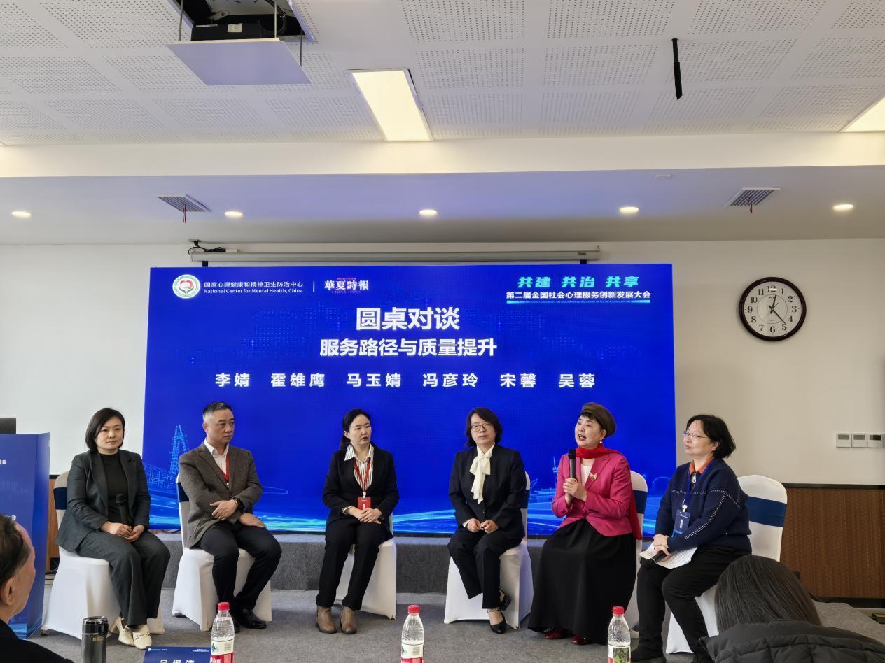 圖為宋馨在圓桌對(duì)話會(huì)上分享為困境兒童提供心理健康關(guān)愛(ài)服務(wù)